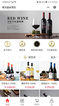 紹興葡尚皇家酒莊小程序是紹興魔方網(wǎng)絡(luò)科技有限公司2019年度開(kāi)發(fā)的微信小程序,小程序頁(yè)面設(shè)計(jì)時(shí)尚簡(jiǎn)潔,是愛(ài)品味紅酒和收藏紅酒購(gòu)買小程序,開(kāi)發(fā)了首頁(yè)商城、分類、購(gòu)物車、我的中心等等模塊。